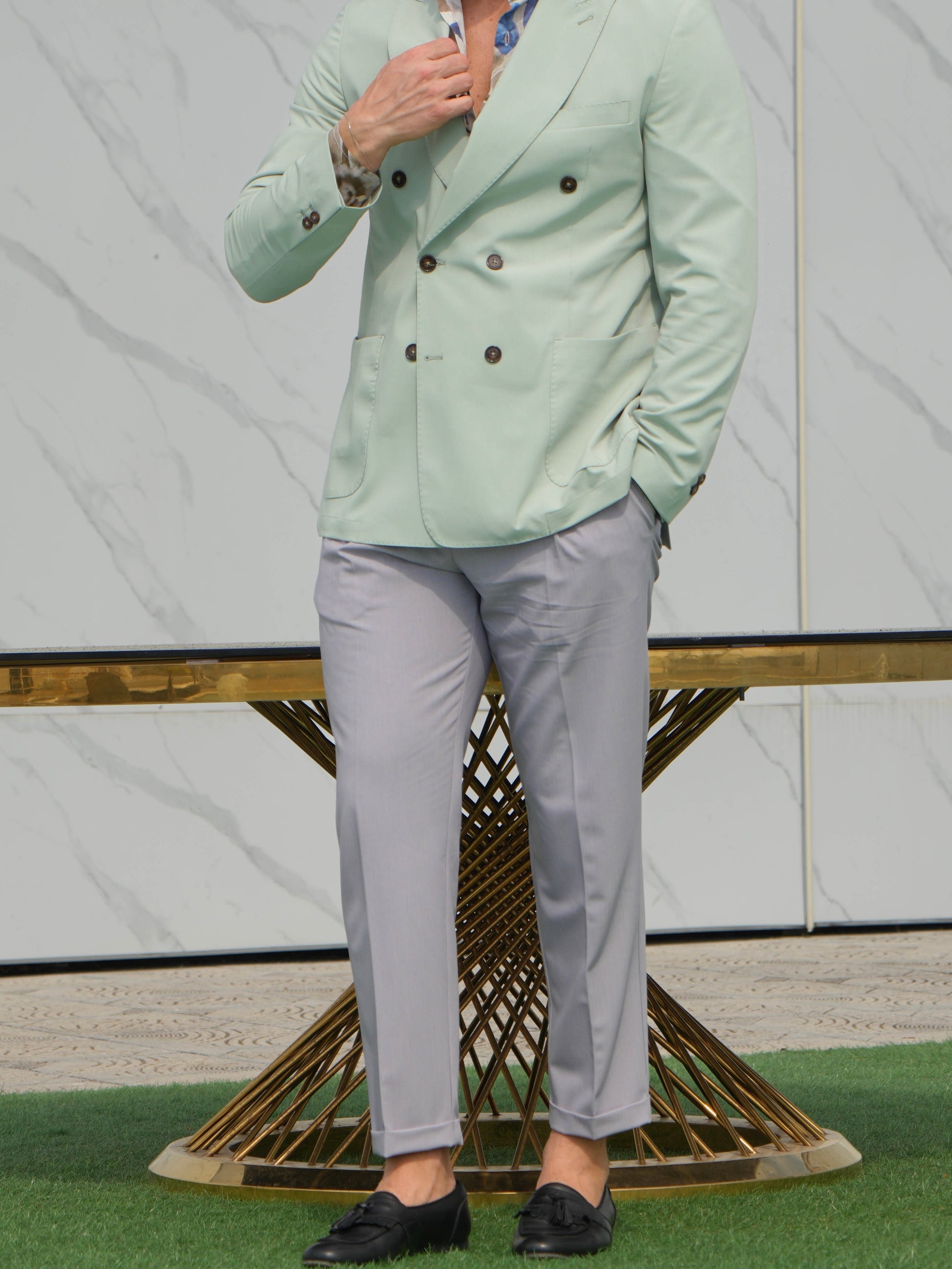 Completo Sartoriale spezzato: Blazer Verde Menta e Pantalone Grigio