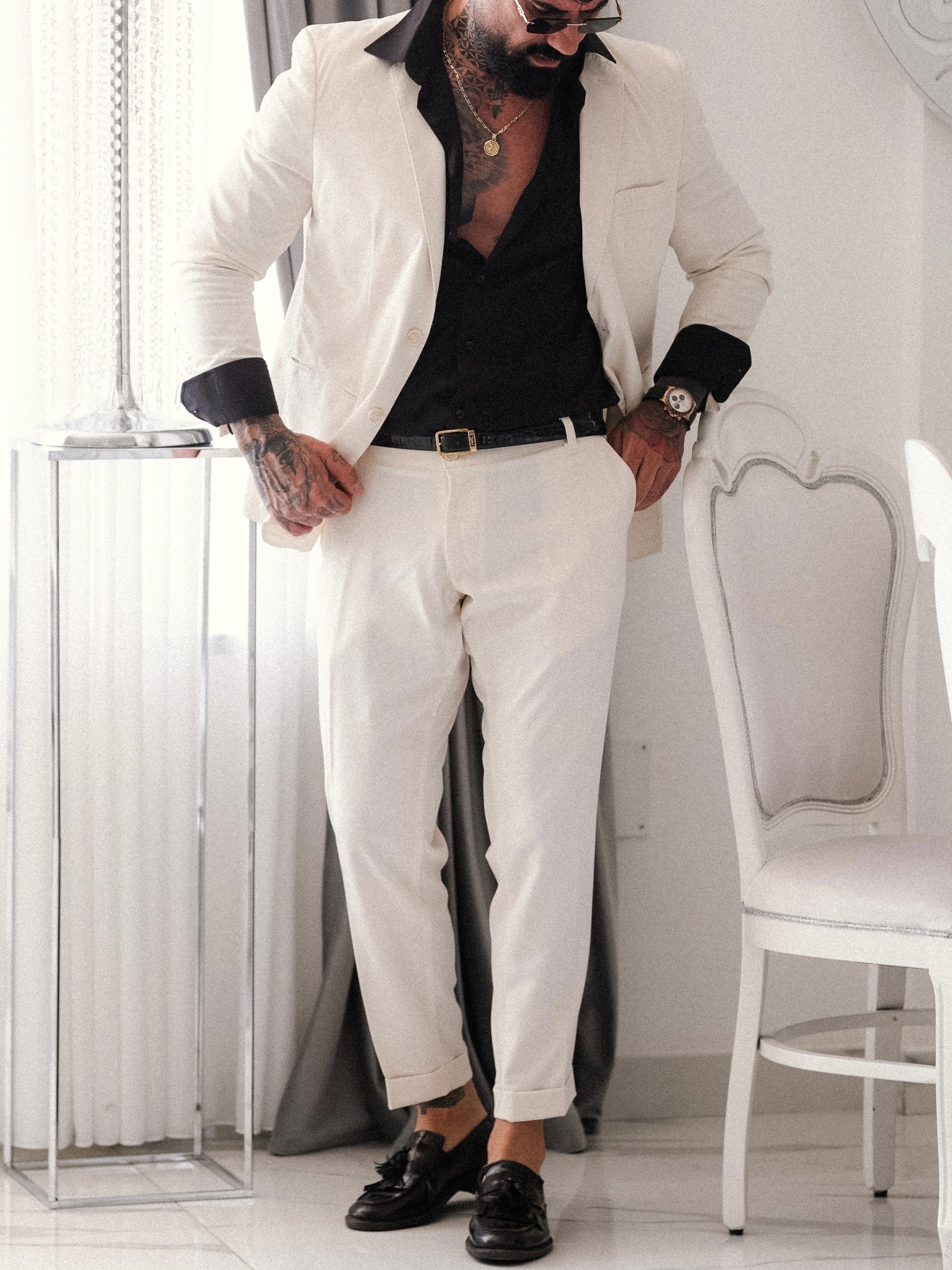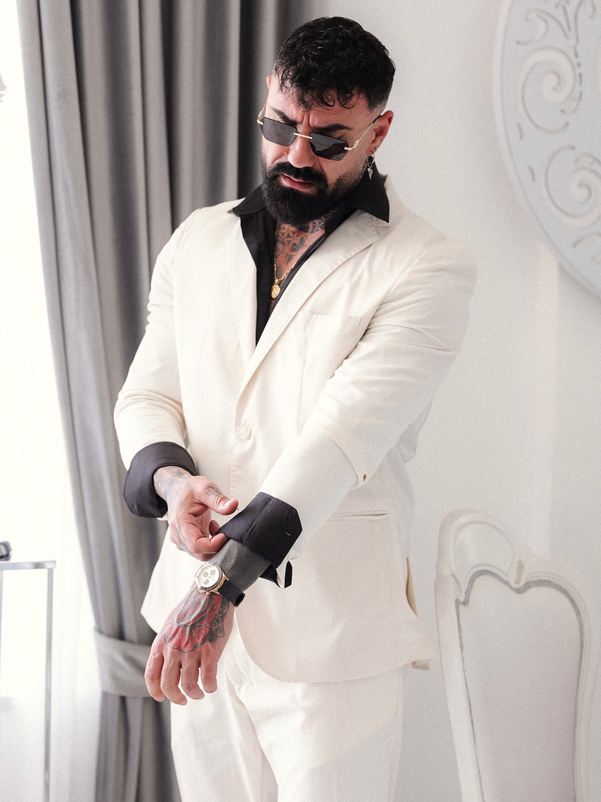 Abito Monopetto Petto: Un'Icona di Stile e Sofisticatezza. Questo abito incarna l'eleganza senza tempo del modello monopetto, simbolo di raffinatezza e autorevolezza. La sua struttura definita e la chiusura a doppio bottone creano una silhouette imponente e curata, perfetta per l'uomo che desidera distinguersi con classe in ogni occasione formale e professionale.