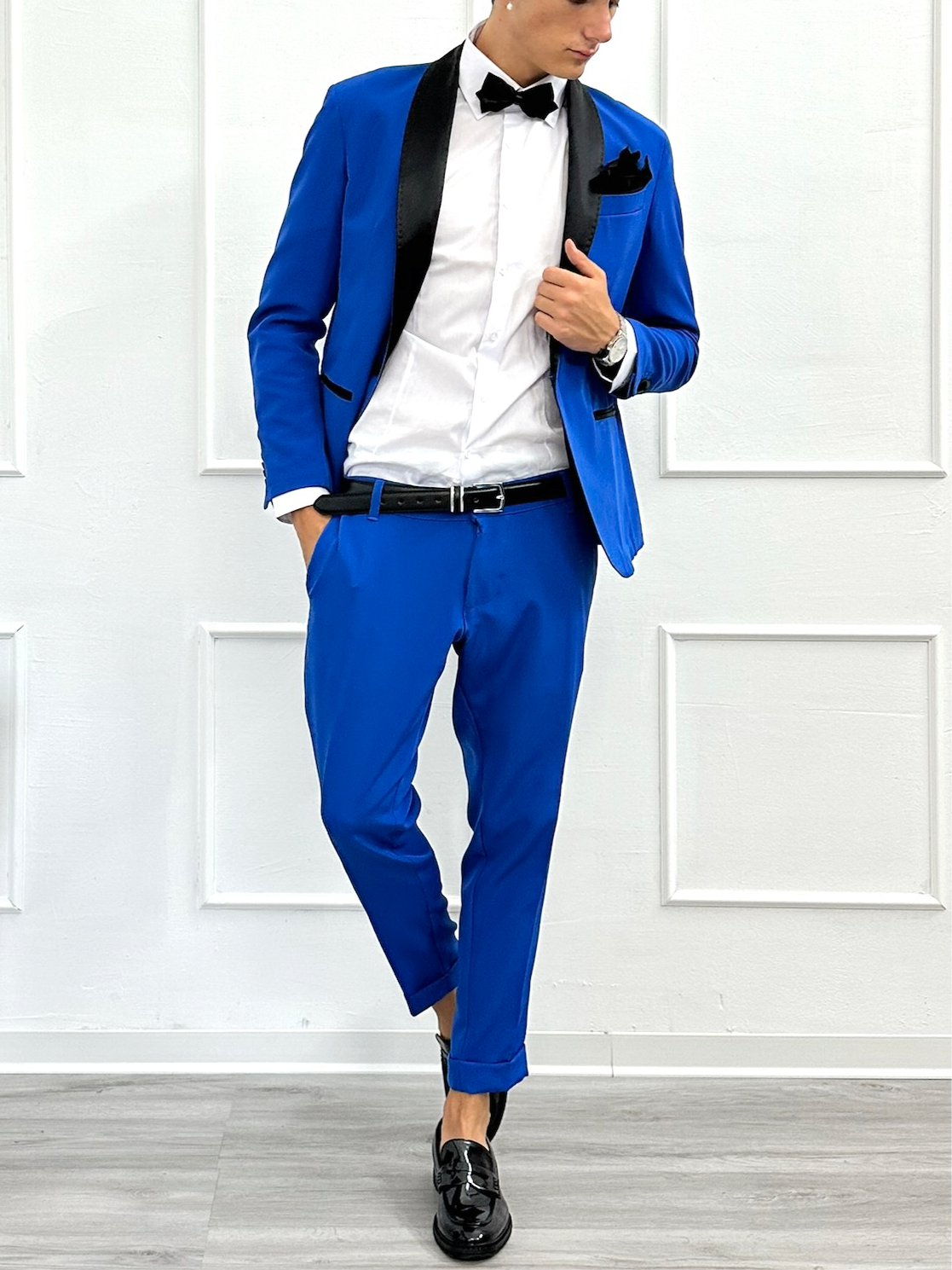 Questo smoking rappresenta la quintessenza dello stile formale serale, un'icona di sofisticatezza e distinzione. La sua linea impeccabile e i dettagli ricercati lo rendono la scelta ideale per l'uomo che desidera lasciare un'impressione indimenticabile in eventi speciali e cerimonie di prestigio.