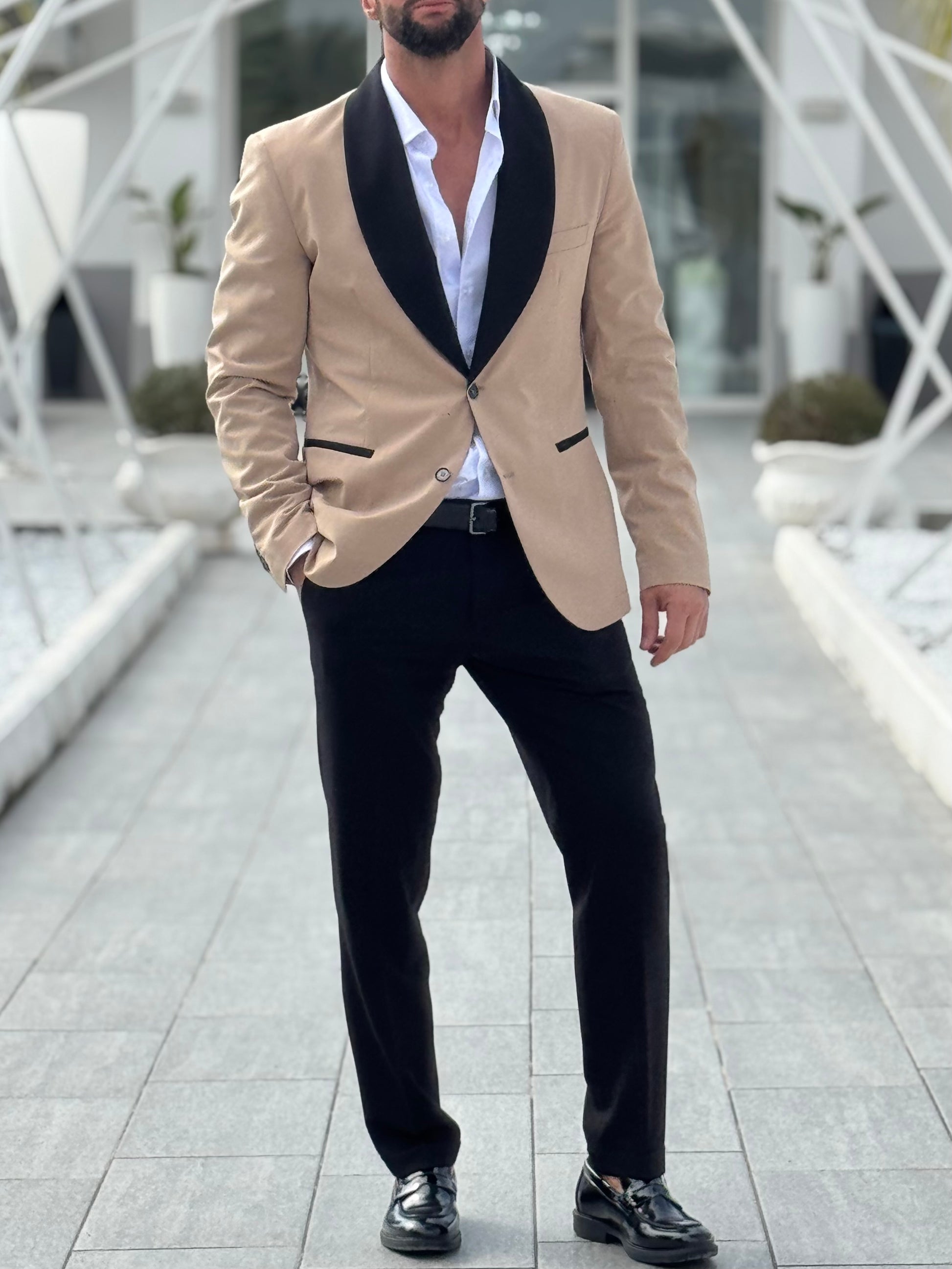 Abito Smoking Marley Beige con Rever Nero a Contrasto