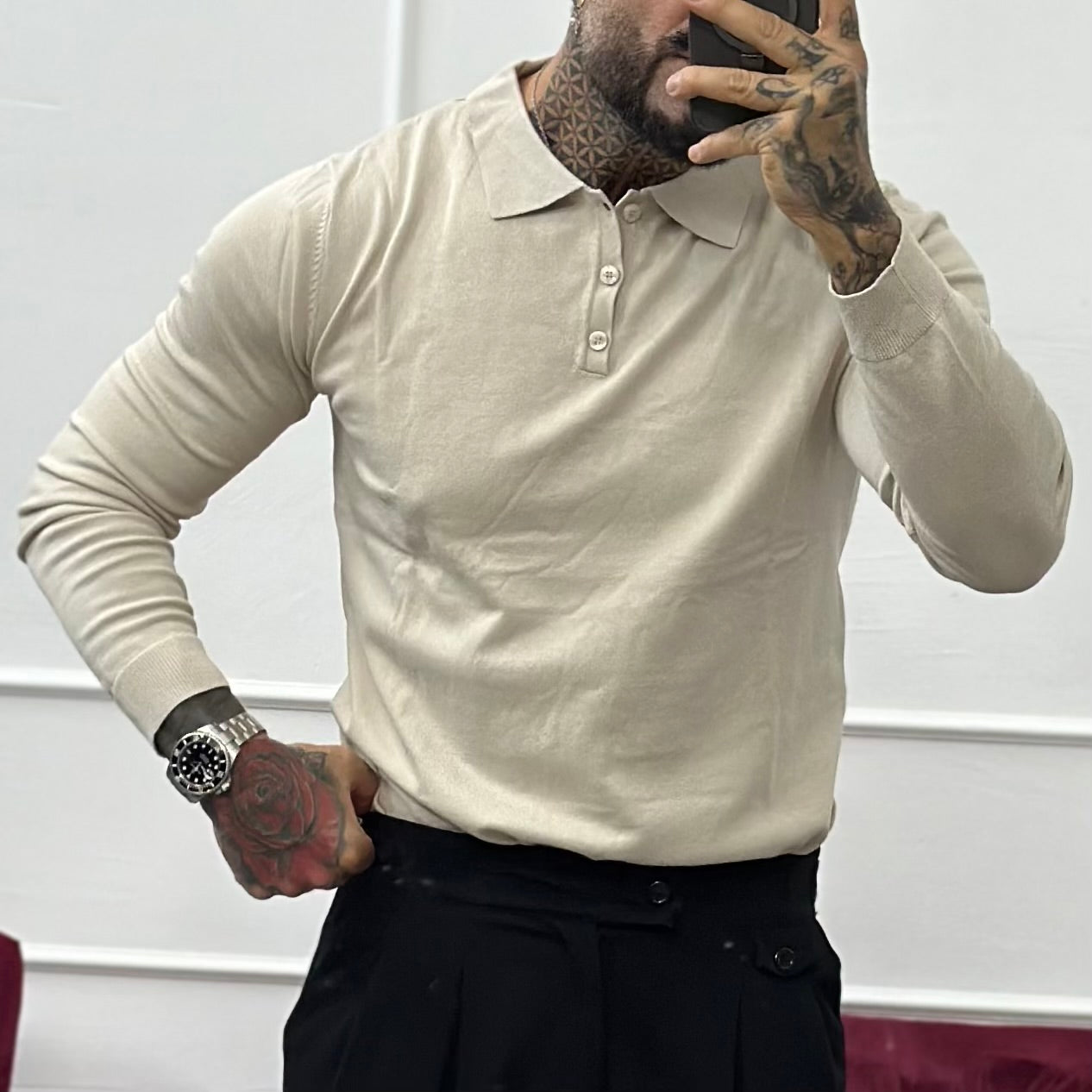 Polo in Filo: Un Tocco di Texture e Stile Contemporaneo. Distinguiti con questa polo realizzata in tessuto filo, caratterizzato da una trama rigata orizzontale che conferisce un aspetto strutturato e moderno. Perfetta per un look casual chic con un tocco di originalità, questa polo aggiunge un elemento tattile interessante al tuo outfit.