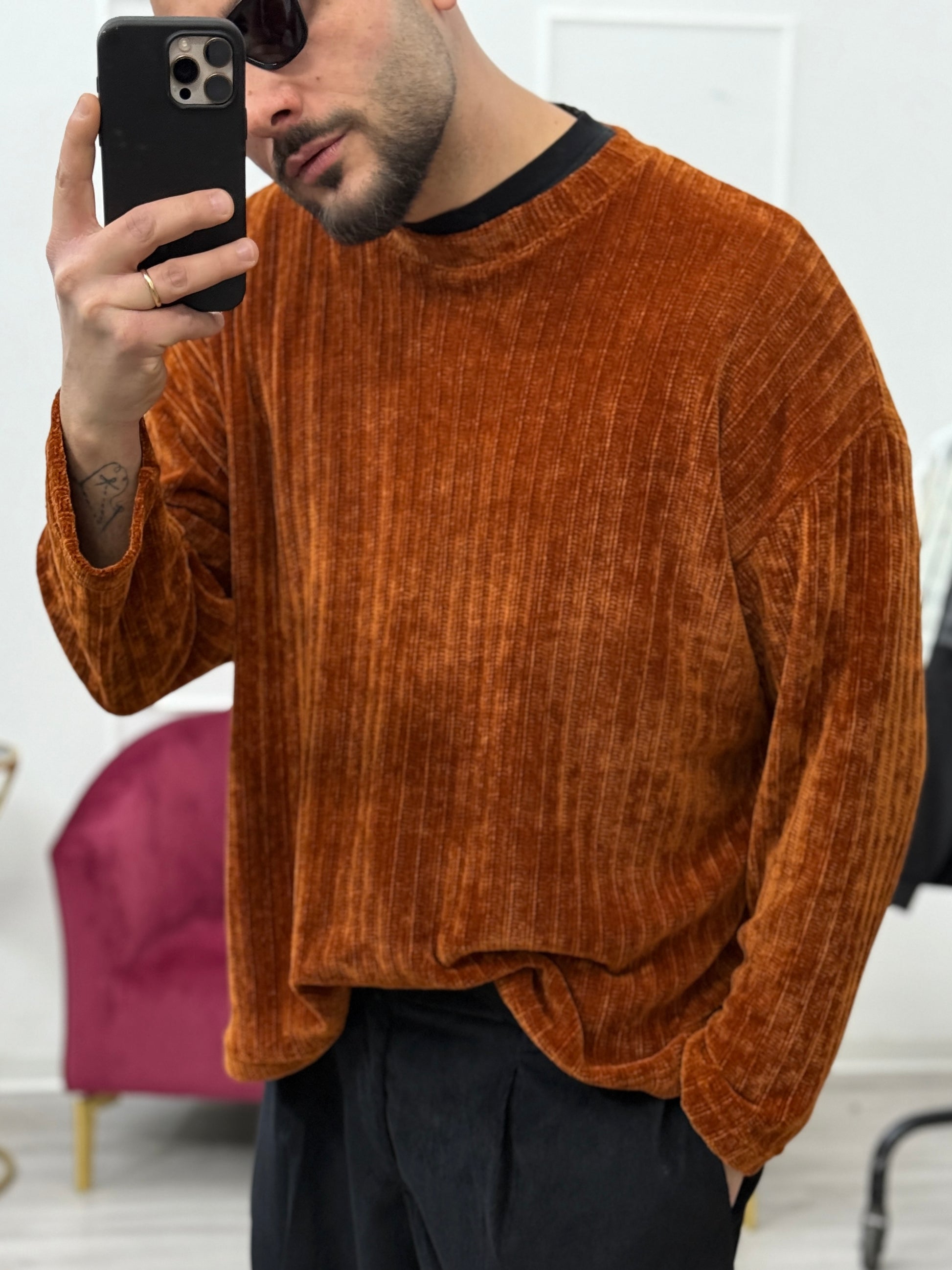 Pullover ciniglia girocollo mattone