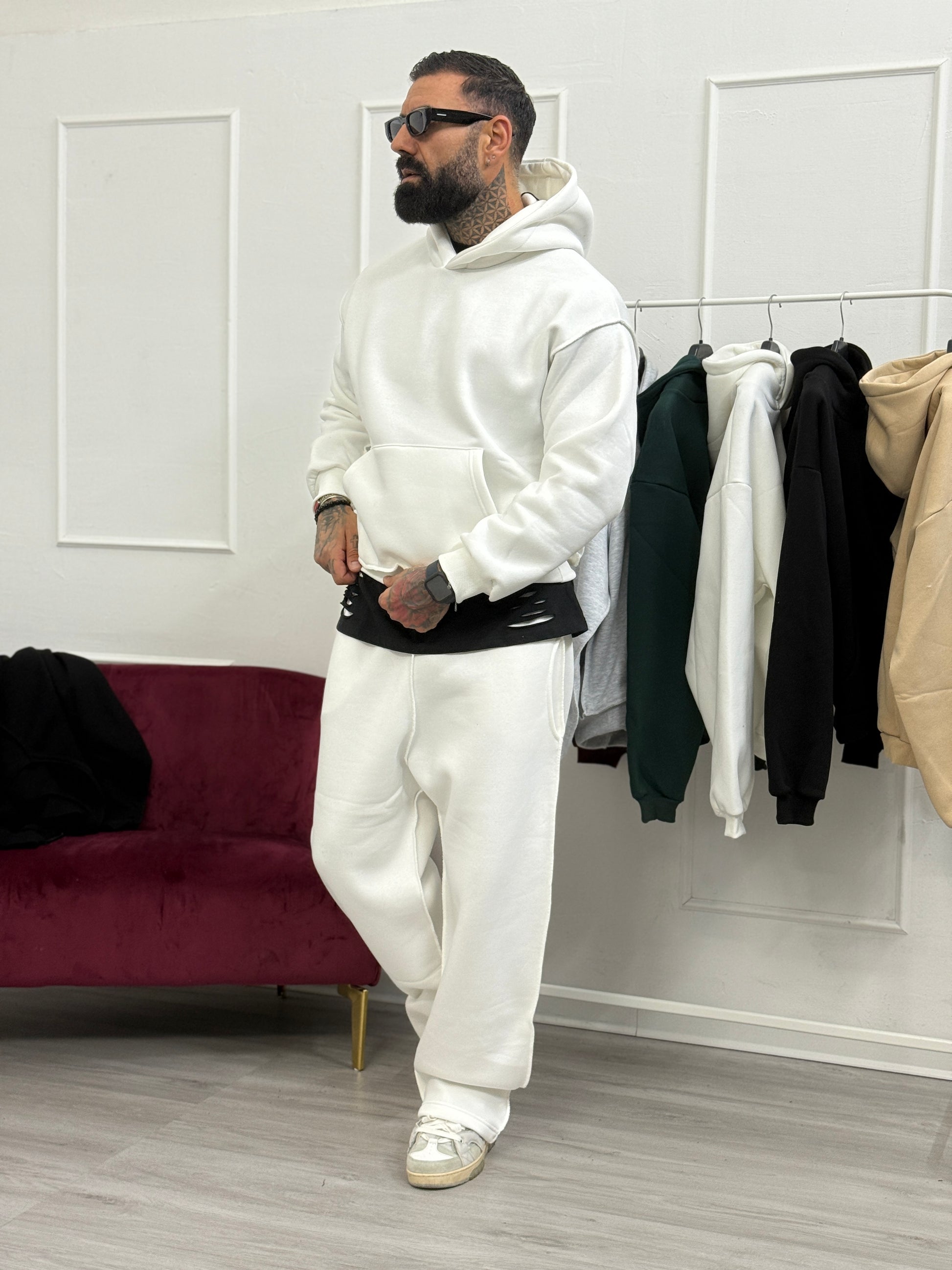 Tuta baggy cuciture panna